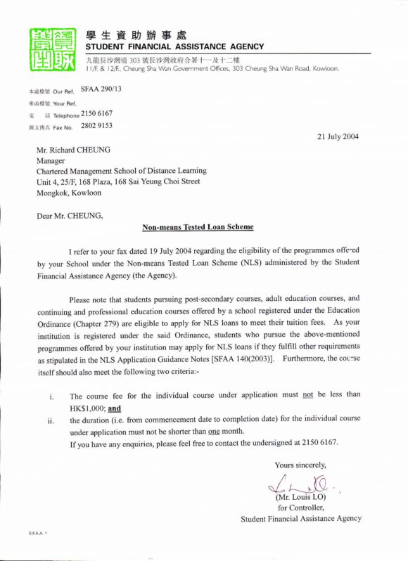 Non-Means Test Loan ( please key in " Chartered Management School of Distance Learning ", and click " F " )